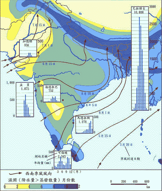 南亚降水分布图: