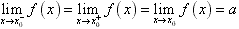 当x无限地接近于x0(可由任何方向接近)时,f(x)无限趋近于一个常数a,则称a是f(x)在点x0处的极限,