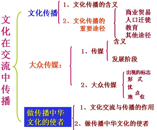 (2)特点:大众传媒能够最大程度地超越时空的局限,汇集来自世界各地的信息,日益显示出文化传递、沟通、共享的强大功能,已成为文化传播的主要手段。
