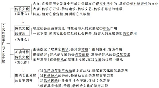 (3)随着教育方式的不断变革,教育在人类文化的传承中将产生越来越大的影响。提醒 影响文化发展的因素中,科学技术、思想运动、教育是从文化自身角度讲的,属于内部因素;生产力与生产关系的矛盾运动则属于外部因素。在回答有关促进文化发展的措施时,可以变通地从这几个角度提出,还可以从文化继承、传播、创新等角度分析。