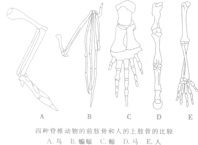 比较解剖学为生物进化提供的最重要的证据是同源器官。同源器官是指外形、功能不同,但来源相同、在解剖结构上具有相同性或相似性的器官。同源器官的存在,证明凡是具有同源器官的生物,都是由共同的原始祖先进化而来的,只是在进化的过程中,由于生活环境不同,同源器官适应于不同的生活环境,逐渐出现形态和功能上的不同,如图。