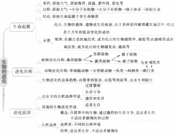 ②科学家发现,越简单、越低等的生物化石总是出现在越古老的地层里,越复杂、越高等的生物化石则出现在越新近形成的地层里。
