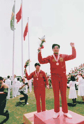 (2)许海峰:1984年,第23届在美国洛杉矶奥运会上,为中国首次获得的奥运金牌,实现了零的突破。