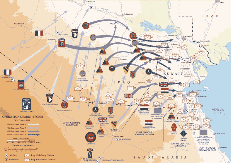 海湾战争:海湾战争是指1990年8月2日至1991年2月28日期间,以美国为首的由34个国家组成的多国部队和伊拉克之间发生的一场局部战争。1990年8月2日,伊拉克军队入侵科威特,推翻科威特政府并宣布吞并科威特。以美国为首的多国部队在取得联合国授权后,于1991年1月16日开始对科威特和伊拉克境内的伊拉克军队发动军事进攻,主要战斗包括历时42天的空袭、在伊拉克、科威特和沙特阿拉伯边境地带展开的历时100小时的陆战。多国部队以较小的代价取得决定性胜利,重创伊拉克军队。伊拉克最终接受联合国660号决议,并且从科威特撤军。