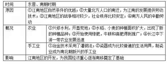 初中历史知识点:江南地区的开发(为经济重心南移奠定基础)