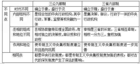 比较三公九卿制和三省六部制: