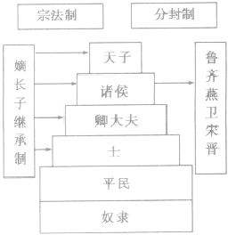 (1)分封制是宗法制的政治体现。周天子以嫡长子世袭,其余诸子由周天子将土地、庶民和奴隶分封给他们,成为诸侯。在诸侯领地内,诸侯仍由嫡长子继承,其余诸子接受分封,成为卿大大。卿大夫再依次分封。这样层层分封下去,形成森严的等级制度。