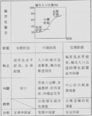 产业革命前缓慢??产业革命后加速发展(20世纪尤其是二次世界大战后速度空前,城市人口比重迅速上升。大城市发展速度超过小城镇、数目增多;人口规模迅速膨胀。)
