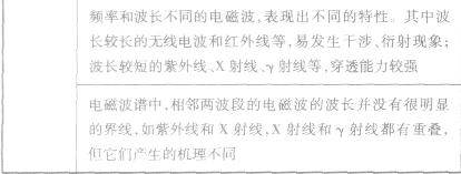 | 电磁波谱 | 按电磁波的波长或频率大小的顺序把它们排列成谱,叫做电磁波谱 |